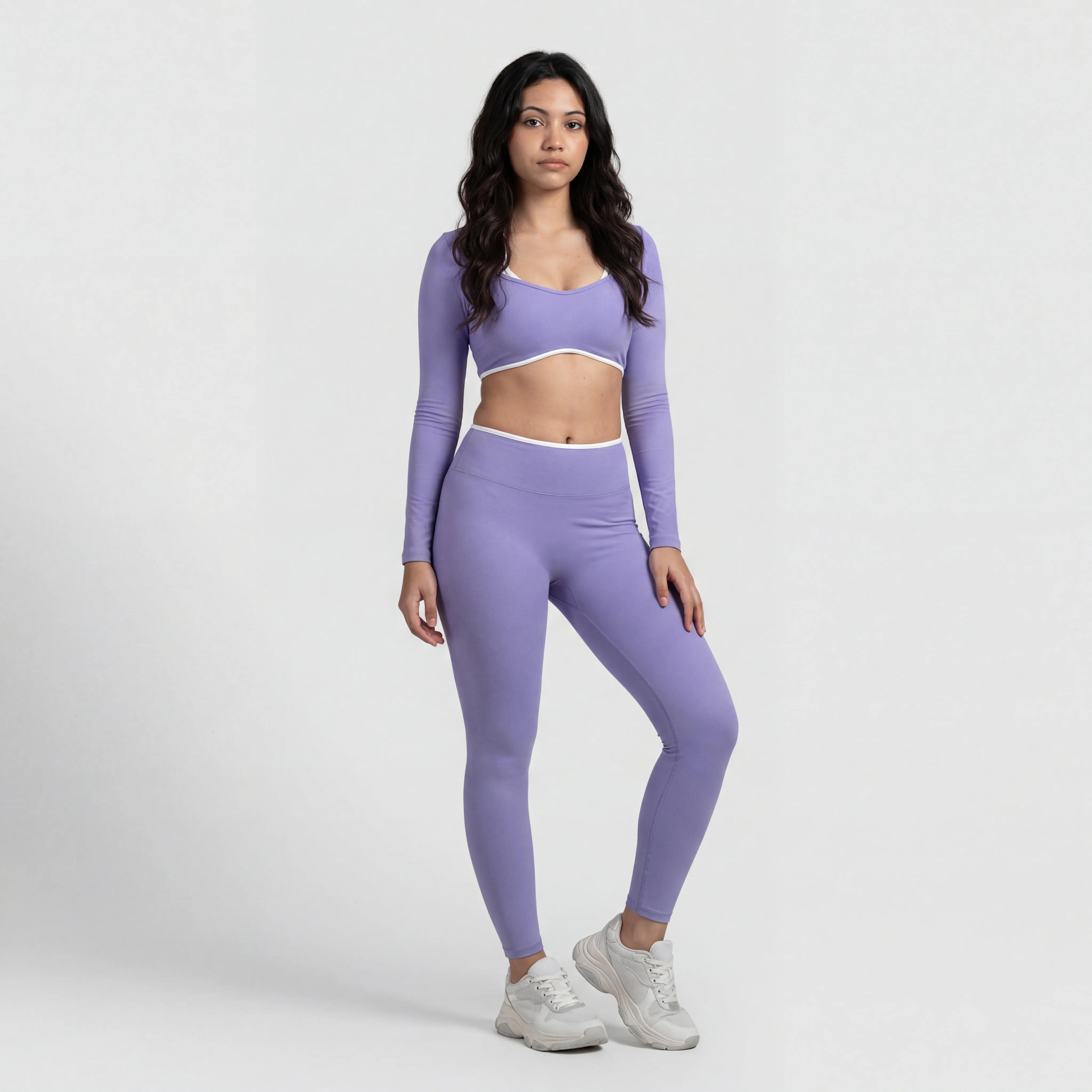 Designed for movement and made to flatter, this two-piece active set is crafted from a smooth, high-stretch nylon-spandex blend that feels lightweight yet supportive on the body. The fabric is breathable and quick-drying, keeping you comfortable through workouts, walks, and all-day wear. The cropped top offers a sleek, sculpted fit that stays in place while allowing easy movement, while the high-waist leggings provide gentle compression and a secure, flattering hold.Â